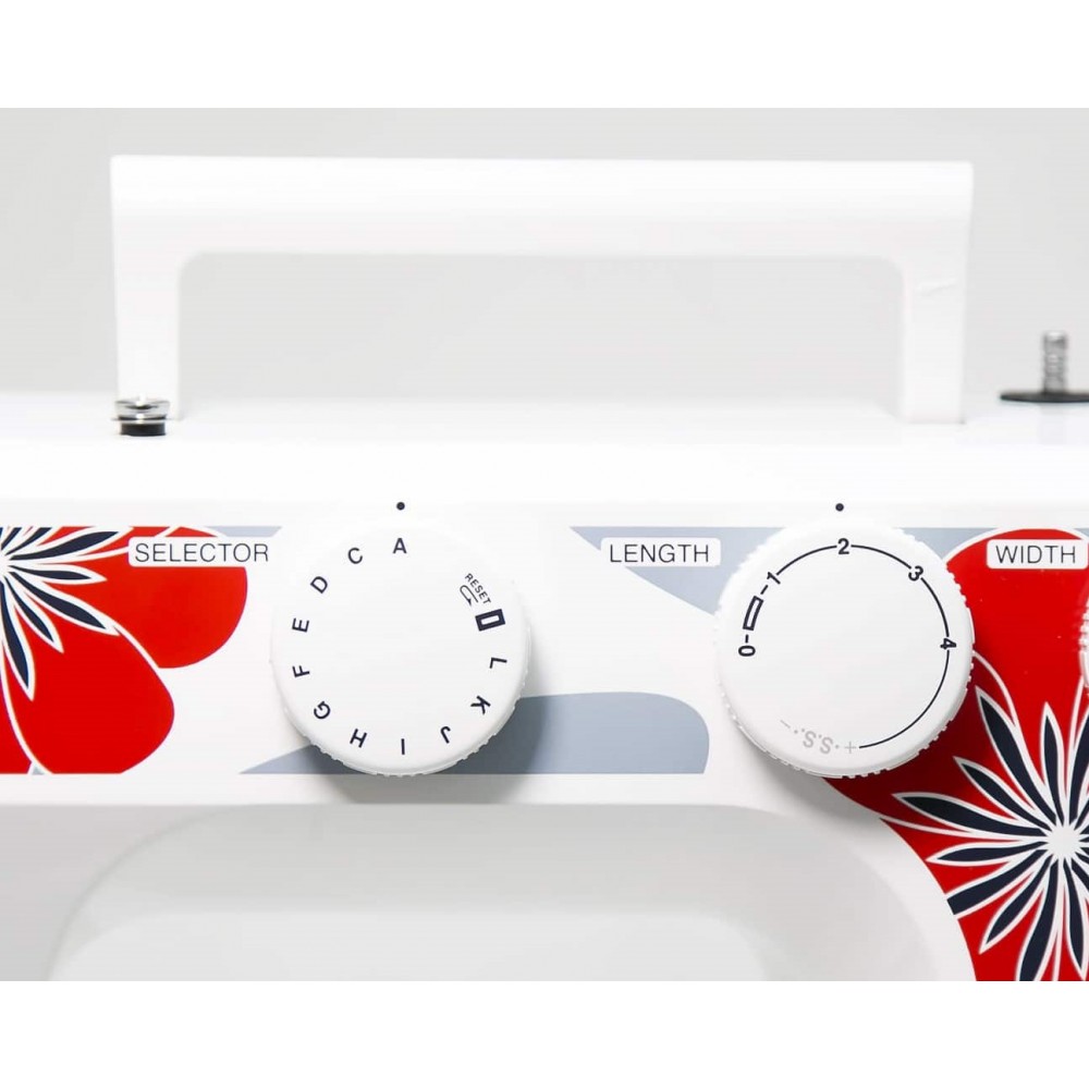 Janome J925S с вертикальным челноком с 3-сегментным транспортёром выполняет 25 операций, включая оверлочные и трикотажные строчки. Благодаря автоматическому режиму Вы быстро получите аккуратные прорезные петли. Хорошие отзывы заработал встроенный нитевдеватель, а также удобная рукавная платформа и яркая подсветка рабочей области, с 2018 года модель выпускается со светодиодной подсветкой. На верхней части машины расположены катушечные стержни, поэтому начать работу с двойной иглой и второй катушкой будет легко. На лицевой панели расположены регуляторы длины и ширина стежка, выбора операций и переключение строчки в обратное направление (реверс).