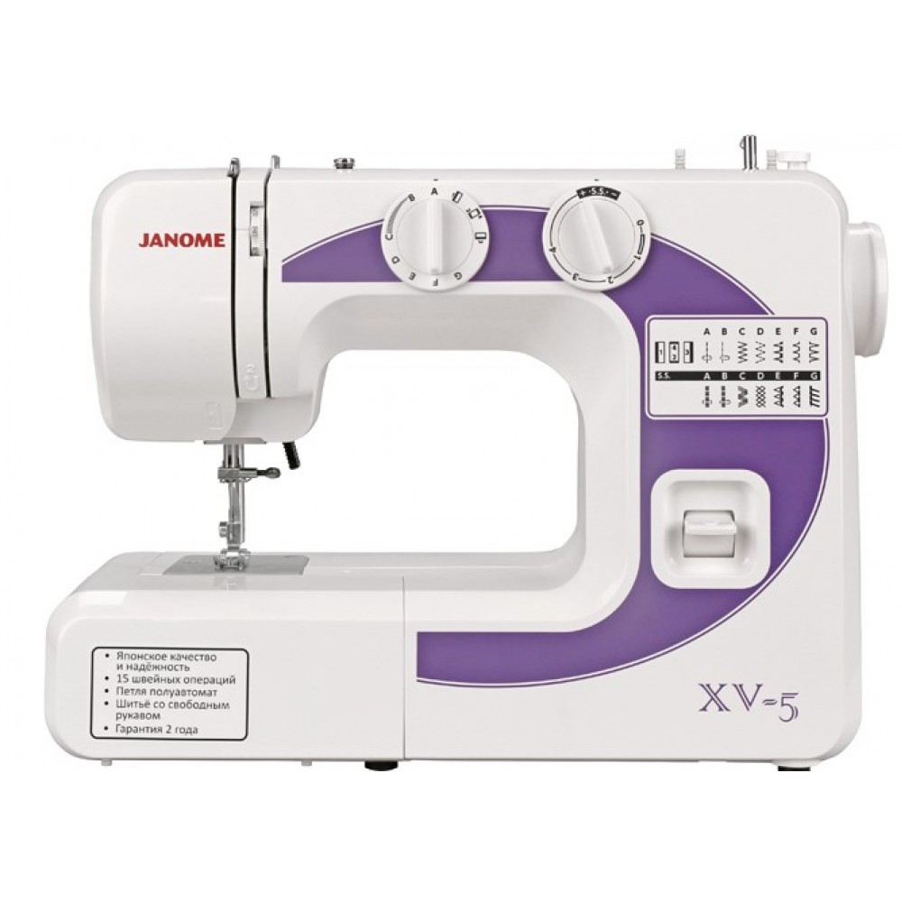Швейная машина Janome XV-5 - вариант швейной машины для начинающих рукодельниц. С ее помощью вы научитесь выполнять базовые строчки, а также выметывать петли в полуавтоматическом режиме.